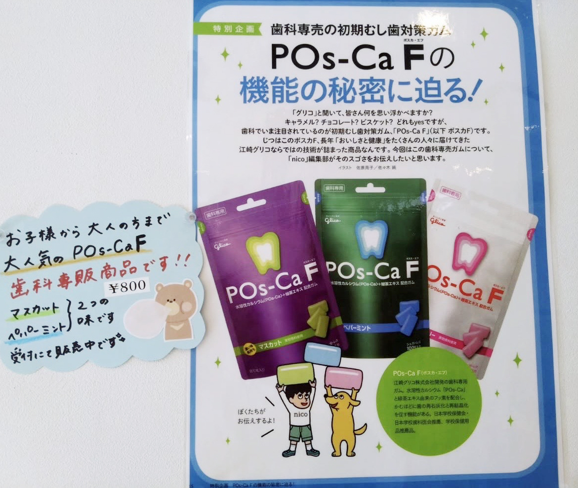 フッ素入りガムPOs-Ca F(ポスカ・エフ)をご紹介いたしました。
